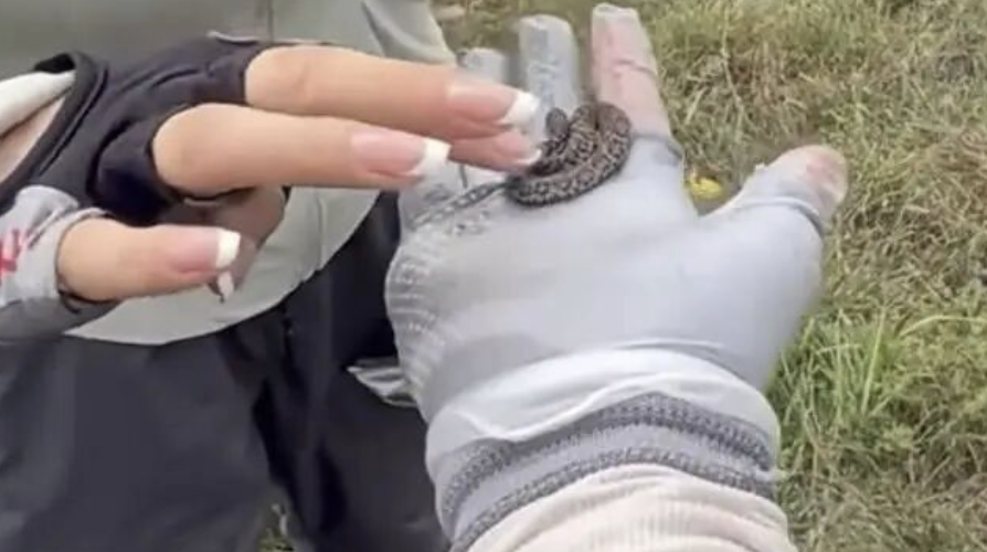 一笔纪录“爬山捡幼蛇并上手抚摸”的视频