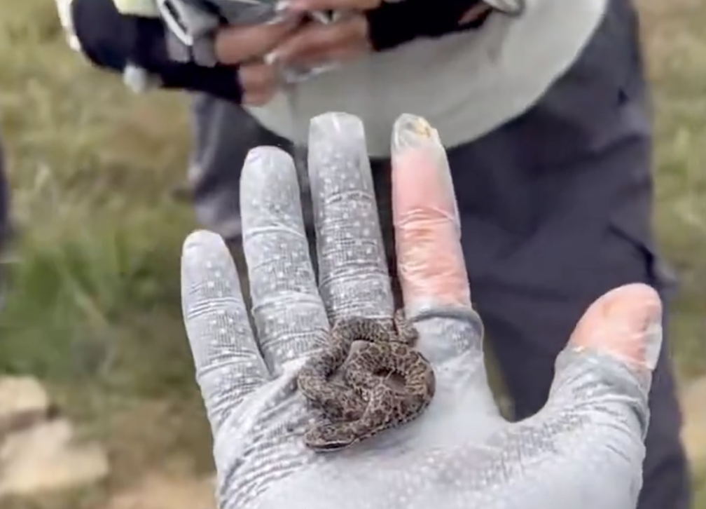 须眉将幼蛇放在手心。图源:国度救急播送