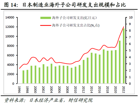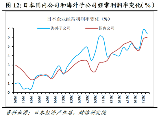 二、日本企业出海影响:踏实汇率、保障国民收入、鼓吹产业升级。一是企业出海鼓吹日本由贸易顺差调理为投资顺差,但时时账户差额举座稳中有升,对日元踏实和日元资产的国际竞争力酿成有劲补助。二是出海带动日本企业收入和利润率双提高,部分冲销了国内需求疲弱对服务和国民收入的牵累。三是外洋阛阓的拓展鼓吹日本企业加多研发参预,助力国内产业结构升级。
