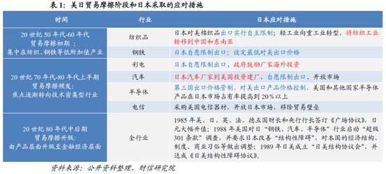 1960-1990年期间,日本经济快速追逐好意思国,其口头GDP占好意思国口头GDP的比值由不及1成快速升至7成傍边(见图1)。同期日本对好意思国贸易逆差的孝顺也握住高潮(见图2),导致好意思日贸易摩擦握住升级。摩擦对象经历了“纺织、钢铁等低附加值产业→汽车、家电等代表的技巧密集型行业→汇率、经济结构等边界”的演变,日本的应付门径也侍从调节,由最运转的“实行自觉出口顾问”、“设定最低出口价钱”等扬弃性门径,到迟缓尝试饱读舞企业外洋投资建厂(见表1),最终兑现了“贸易立国”到“对外投资立国”的调理,告捷躲藏了贸易壁垒。